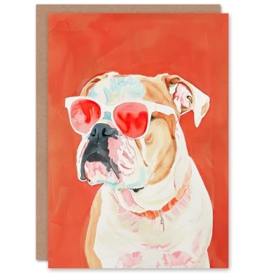 Artery8 Greeting Card Dog Lover English Bulldog Sunglasses Pop Art Red Blank For Him Or Her Birthday