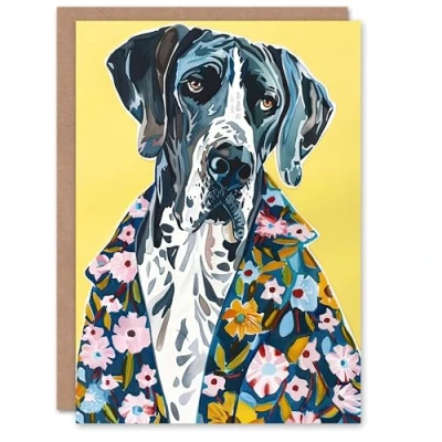 Artery8 Greeting Card Dog Lover Great Dane in Floral Hawaiian Shirt Blank For Him Or Her Art Birthday