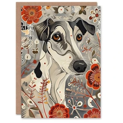 Artery8 Greeting Card Dog Lover Jack Russell Terrier Pet in Wildflowers Blank For Him Or Her Art Birthday