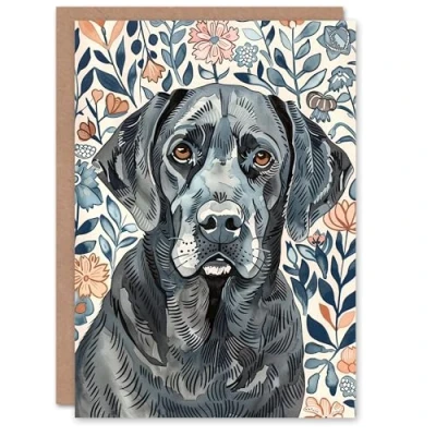 Artery8 Greeting Card Dog Lover Labrador Retriever Floral Watercolour For Her Woman Birthday