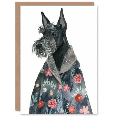 Artery8 Greeting Card Dog Lover Scottish Terrier With Floral Kimono Blank For Him Or Her Art Birthday