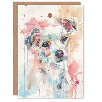 Artery8 Greeting Card Dog Lover Watercolour Portrait Pink Light Pastel Blank For All Him Or Her Art Birthday