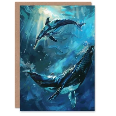 Artery8 Greeting Card Dolphin Whale Underwater Dance Sea Life Painting Blank For Him Or Her Art Birthday