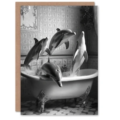 Artery8 Greeting Card Dolphins Playing in Bathtub Black White Surreal Blank For Him Or Her Art Birthday