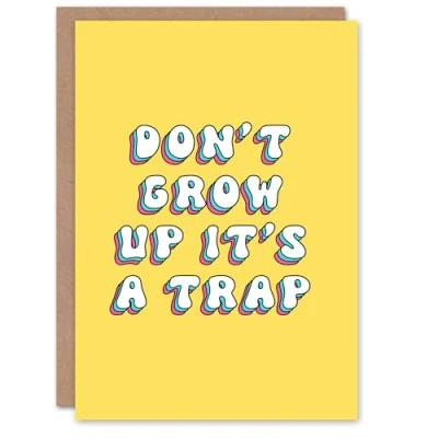 Artery8 Greeting Card Don't Grow Up It's a Trap Funny Bright Retro For Her Sister Daughter Niece Granddaughter Woman Birthday