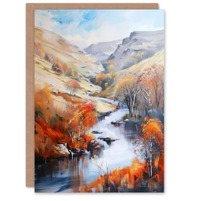 Artery8 Greeting Card Dovedale River Dove Autumn Landscape Oil Painting Blank For Him Or Her Art Birthday