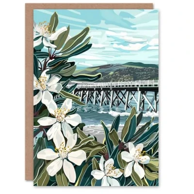 Artery8 Greeting Card Dunoon Pier Scotland Painting Lily Wildflowers Blank For Him Or Her Art Birthday