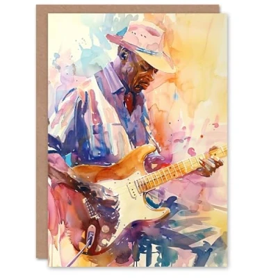 Artery8 Greeting Card Electric Guitarist Music Portrait Watercolour Blank For All Him Or Her Art Birthday