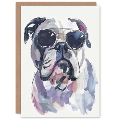 Artery8 Greeting Card English Bulldog in Aviator Sunglasses Watercolour Blank For Him Or Her Art Birthday