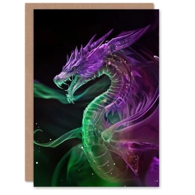 Artery8 Greeting Card Ethereal Dragon Purple Green Fantasy Art Blank For Him Or Her Birthday