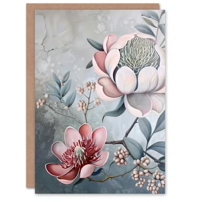 Artery8 Greeting Card Exotic Audubon Style Delicate Flowers Painting Blank For Him Or Her Art Birthday