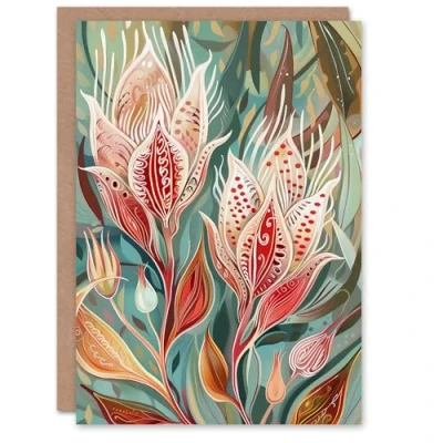 Artery8 Greeting Card Exotic Flower Bloom Patterns Floral Folk Art Blank For Him Or Her Birthday