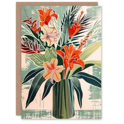 Artery8 Greeting Card Exotic Red Orange Lily Flower Vase Floral Spring For Her Woman Birthday
