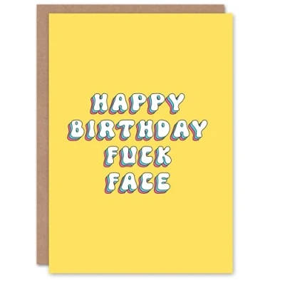 Artery8 Greeting Card F*ck Face Rude Simple Bright Yellow Retro For Her Woman Birthday