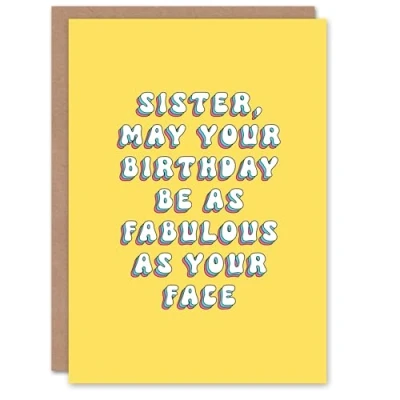 Artery8 Greeting Card Fabulous As Your Face Bright Retro Yellow For Her Sister Birthday
