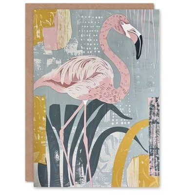 Artery8 Greeting Card Flamingo Bird Pastel Colour Nature Design For Her Woman Birthday