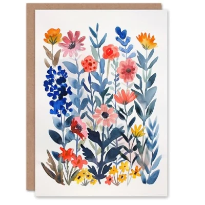 Artery8 Greeting Card Garden Flowers in Spring Scandi Folk Watercolour For Her Woman Birthday