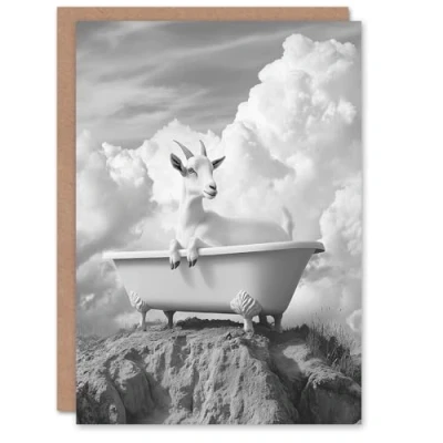 Artery8 Greeting Card Goat in a Bathtub on Hill Black White Surreal Blank For Him Or Her Art Birthday
