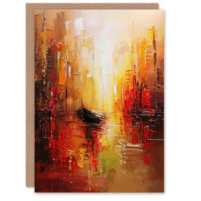 Artery8 Greeting Card Gondola Canal Abstract Venice Fiery Gold Sunset Blank For Him Or Her Art Birthday