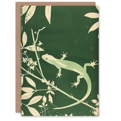 Artery8 Greeting Card Green Eastern Newt Nature Animal Lover Blank For Him Or Her Art Birthday