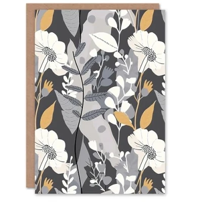 Artery8 Greeting Card Grey Orange Wildflower Design Floral Pattern Blank For Him Or Her Art Birthday