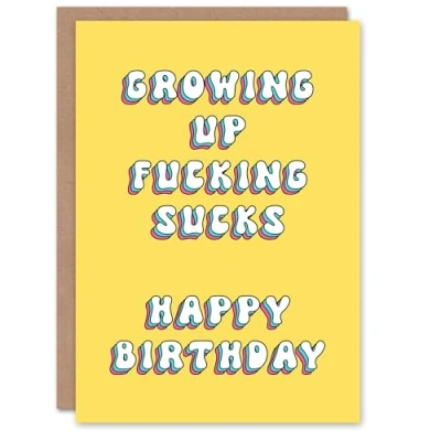 Artery8 Greeting Card Growing Up F*cking Sucks Bright Retro Yellow For Her Woman Wife Gran Mum Sister Birthday