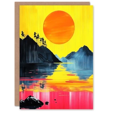 Artery8 Greeting Card Guilin China Sunset Vibrant Abstract Painting Blank For Him Or Her Art Birthday
