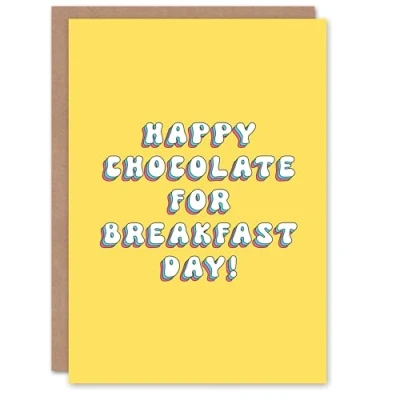 Artery8 Greeting Card Happy Chocolate For Breakfast Day Fun Bright Her Gran Sister Niece Daughter Wife Woman Birthday