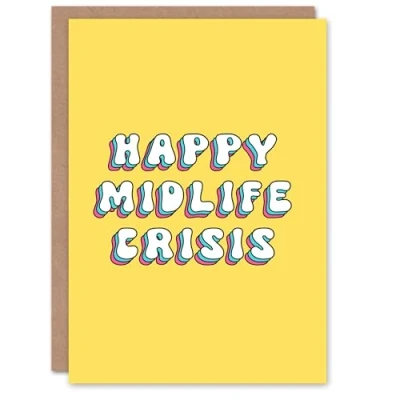 Artery8 Greeting Card Happy Midlife Crisis Bright Retro Yellow For Her Woman Wife Gran Mum Sister Birthday