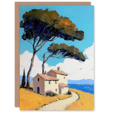 Artery8 Greeting Card Holiday Cottage By Sea Coastal Spain Painting Blank For Him Or Her Art Birthday