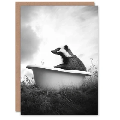 Artery8 Greeting Card Honey Badger in Bathtub Black White Surreal Blank For Him Or Her Art Birthday