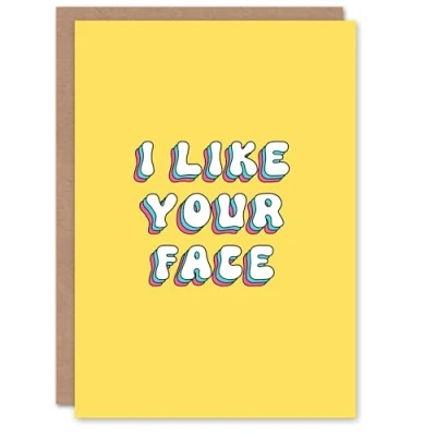 Artery8 Greeting Card I Like Your Face Bright Fun Retro Yellow For Her Wife Woman Girlfriend Birthday