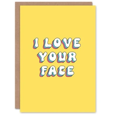 Artery8 Greeting Card I Love Your Face Bright Retro Yellow For Her Wife Woman Girlfriend Birthday