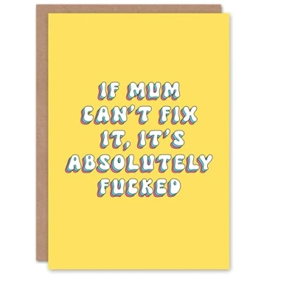 Artery8 Greeting Card If Mum Cant Fix Its F*cked Funny Retro Yellow For Mummy Mom Birthday