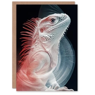 Artery8 Greeting Card Iguana Modern Red Blue Xray Effect Portrait Blank For Him Or Her Art Birthday