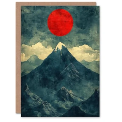 Artery8 Greeting Card Japan Alps Red Sun Mountain Range Landscape Blank For Him Or Her Art Birthday