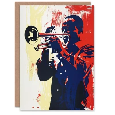 Artery8 Greeting Card Jazz Music Trumpet Player Portrait Graphic Design Blank For Him Or Her Art Birthday