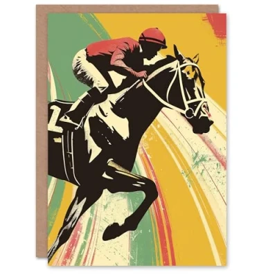 Artery8 Greeting Card Jockey on Race Horse Artwork Bold Colourful Pop Blank For All Him Or Her Art Birthday