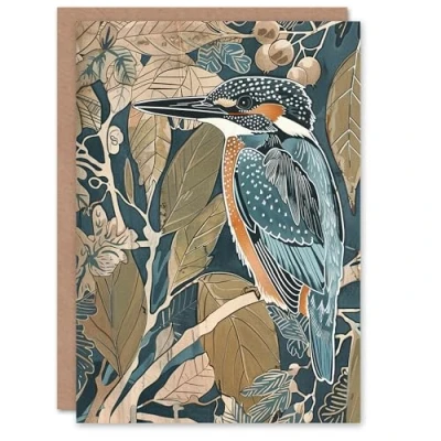 Artery8 Greeting Card Kingfisher Bird on Tree Branch Blue Botanical Blank For All Him Or Her Art Birthday