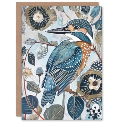 Artery8 Greeting Card Kingfisher Bird Wildflowers Artwork Blue Floral Blank For All Him Or Her Art Birthday