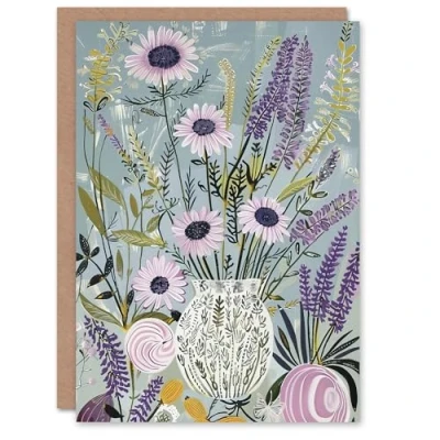 Artery8 Greeting Card Lavender Wildflowers Bouquet in Vase Fun Rustic Blank For All Him Or Her Art Birthday