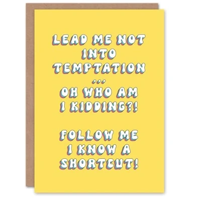 Artery8 Greeting Card Lead Me Not Into Temptation Funny Shortcut Cheeky For Her Woman Best Friend Birthday