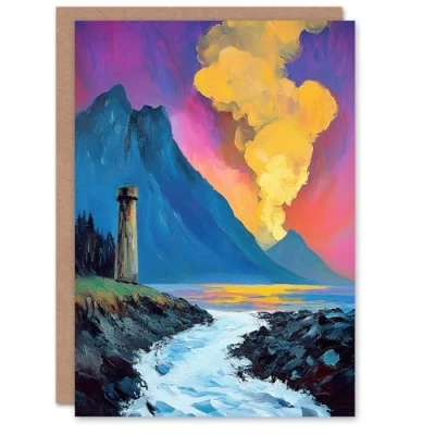 Artery8 Greeting Card Lighthouse by Volcano Iceland Coastal Landscape Blank For Him Or Her Art Birthday