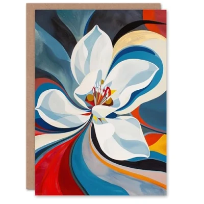 Artery8 Greeting Card Lily Flower Blue Red Orange Abstract Floral For Her Woman Birthday