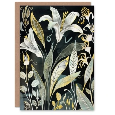 Artery8 Greeting Card Lily Flowers Dark Stylised Floral Painting Blank For All Him Or Her Art Birthday
