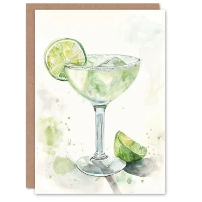 Artery8 Greeting Card Lime Green Margarita Cocktail Modern Watercolour Blank For All Him Or Her Art Birthday