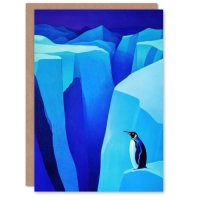 Artery8 Greeting Card Lone King Penguin Antarctic Ice Glacier Landscape Blank For Him Or Her Art Christmas