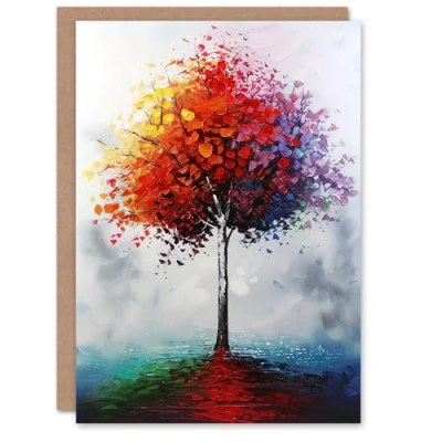 Artery8 Greeting Card Lone Rainbow Tree Painting Autumnal Colourful Blank For Him Or Her Art Birthday