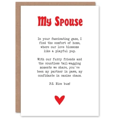 Artery8 Greeting Card Love Poem Dog Lover Spouse Romantic Poetry Fun Blank For Him Or Her Art Anniversary