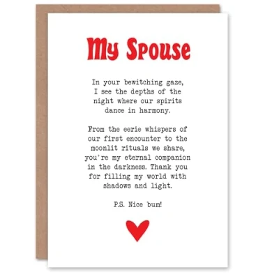 Artery8 Greeting Card Love Poem Goth Spouse Romantic Poetry Fun Blank For Him Or Her Art Anniversary